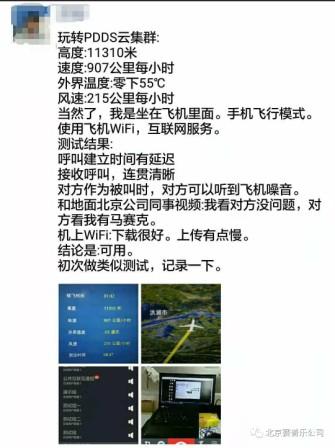 在高速飞行的飞机上,手机飞行模式,使用飞机的WIFI 与地面呼叫接收,清晰连贯,实时视频传输通畅 万米高空,高速行驶,第一个第一次测试,PDDS尝试前人没有做过的事情,首飞测试,表现靠谱!!!